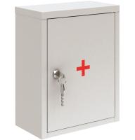 Внутреннее пространство аптечки поделено на четыре отделения. На дверцу установлен врезной ключевой замок.