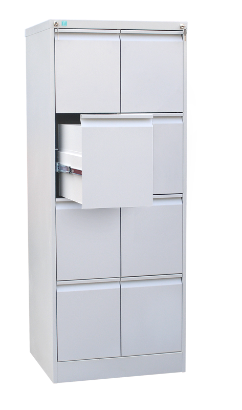 Шкаф ШК-8 оборудован восемью выдвижными ящиками на телескопических направляющих, в которых с удобством размещаются документы формата A4. Внутренние размеры ящиков — 340x250x545 мм.